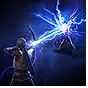 发射一支电光箭矢,击中时产生范围爆炸。击中敌人会对其附着一根电殛棒,使其受到的所有闪电伤害积累电殛效果。敌人下次被电殛时,电殛棒会被移除。