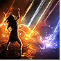 在目标区域降下燃烧箭雨。可以消耗全部三种元素灌注,火焰灌注时范围大幅扩大,闪电灌注时引发闪电箭雨,冰霜灌注时降下冰霜箭雨。