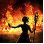 在角色前产生一面火焰之墙,点燃区域内的一切。你和友军发射的投射物只要穿过火墙都会附加火焰伤害。尽量消耗一次闪电灌注,为投射物同时附加闪电伤害。
