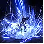 跃向空中并将战矛刺入目标位置的地面,放射出一道闪电充能的震波,并引爆战矛技能。