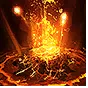 从大地中拔起一座火山,对站在上方的敌人造成伤害并喷发大量炽热投射物。火山存续期间,遭受猛击会再次喷发投射物。引导此技能的时间越长,初始喷发越猛烈,但不会影响后续的投射物喷发。